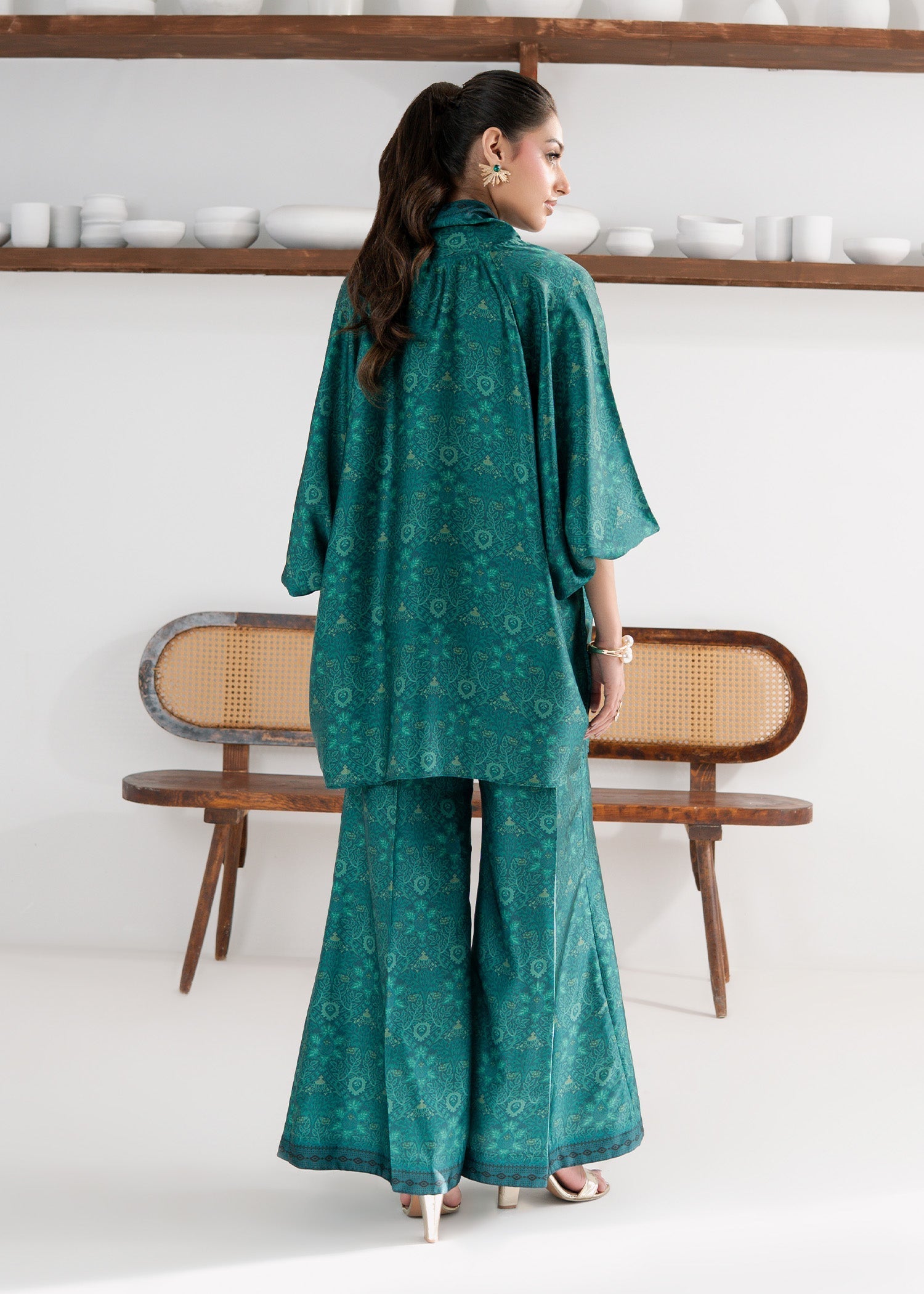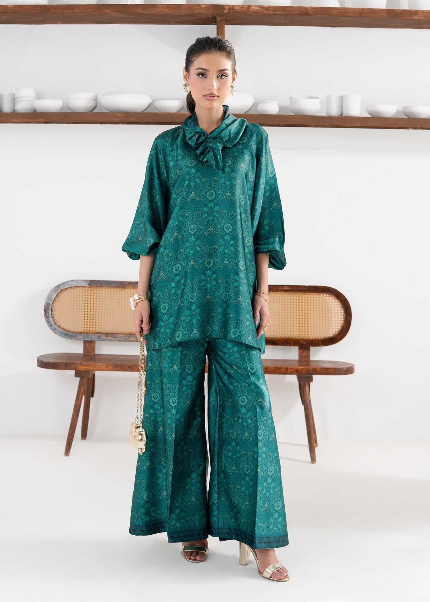 Add a touch of luxury to your wardrobe with our Emerald Silk Co-Ord Set. This elegant two-piece outfit, crafted from premium silk fabric, features a rich emerald green hue that exudes grace and sophistication. The smooth, lustrous texture enhances its refined appeal, making it perfect for festive occasions or evening gatherings. Style it with gold accessories and heels for a regal, effortlessly chic look.