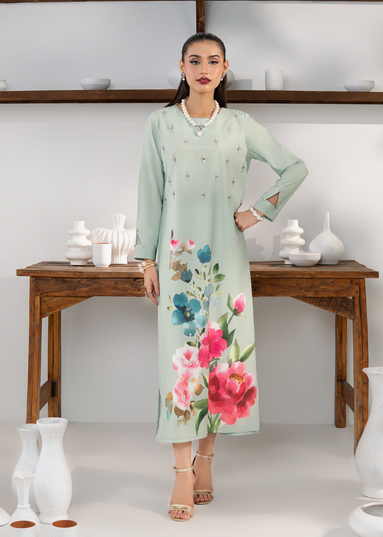 Embrace subtle elegance with our Minty Soft Crepe Shirt, crafted from premium soft crepe fabric. The refreshing mint hue adds a soothing charm, while the delicate embellishments enhance its graceful appeal. Lightweight and effortlessly stylish, this shirt is perfect for daytime gatherings or festive occasions. Pair it with white or pastel trousers for a refined, classy look that radiates freshness and sophistication.