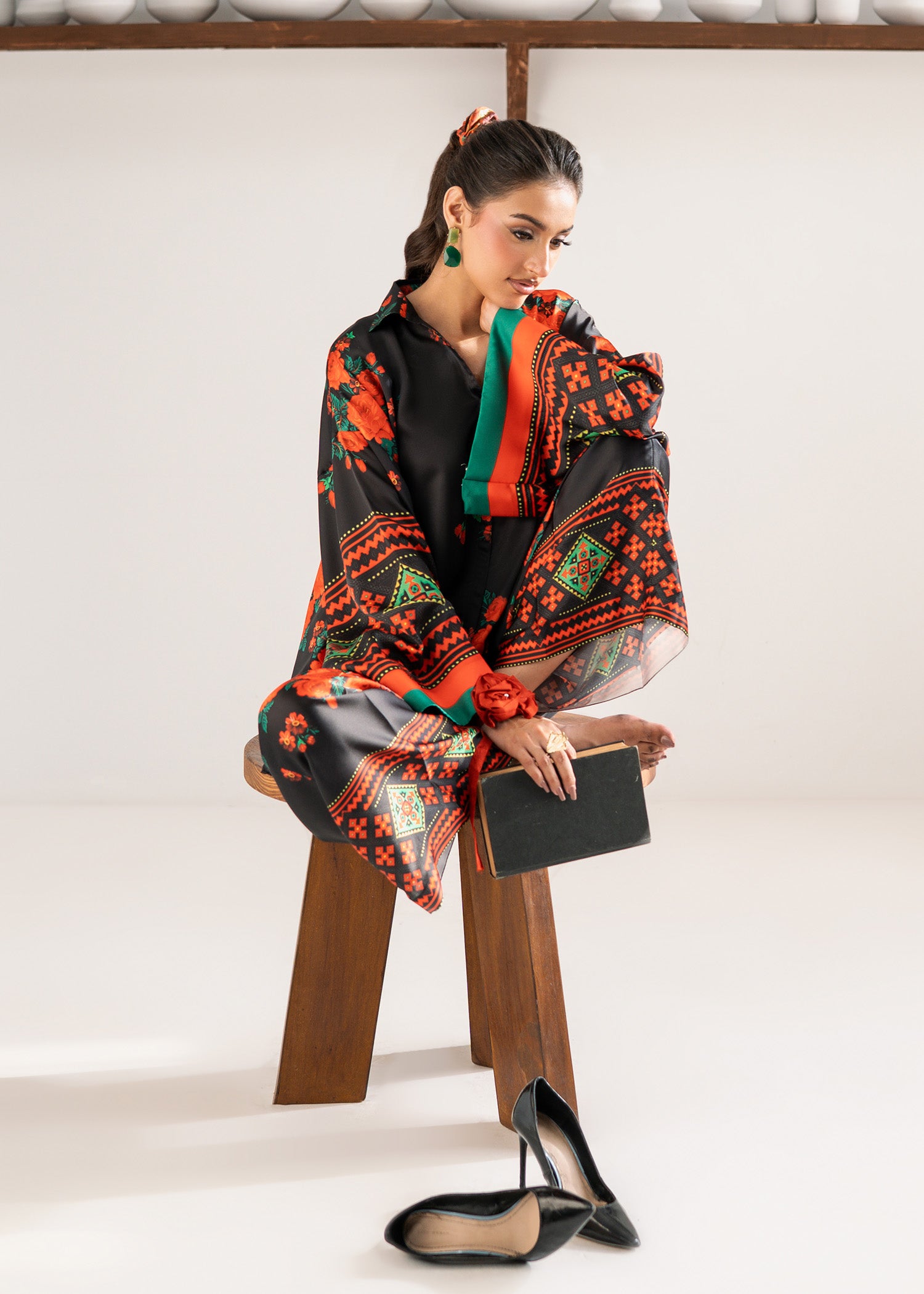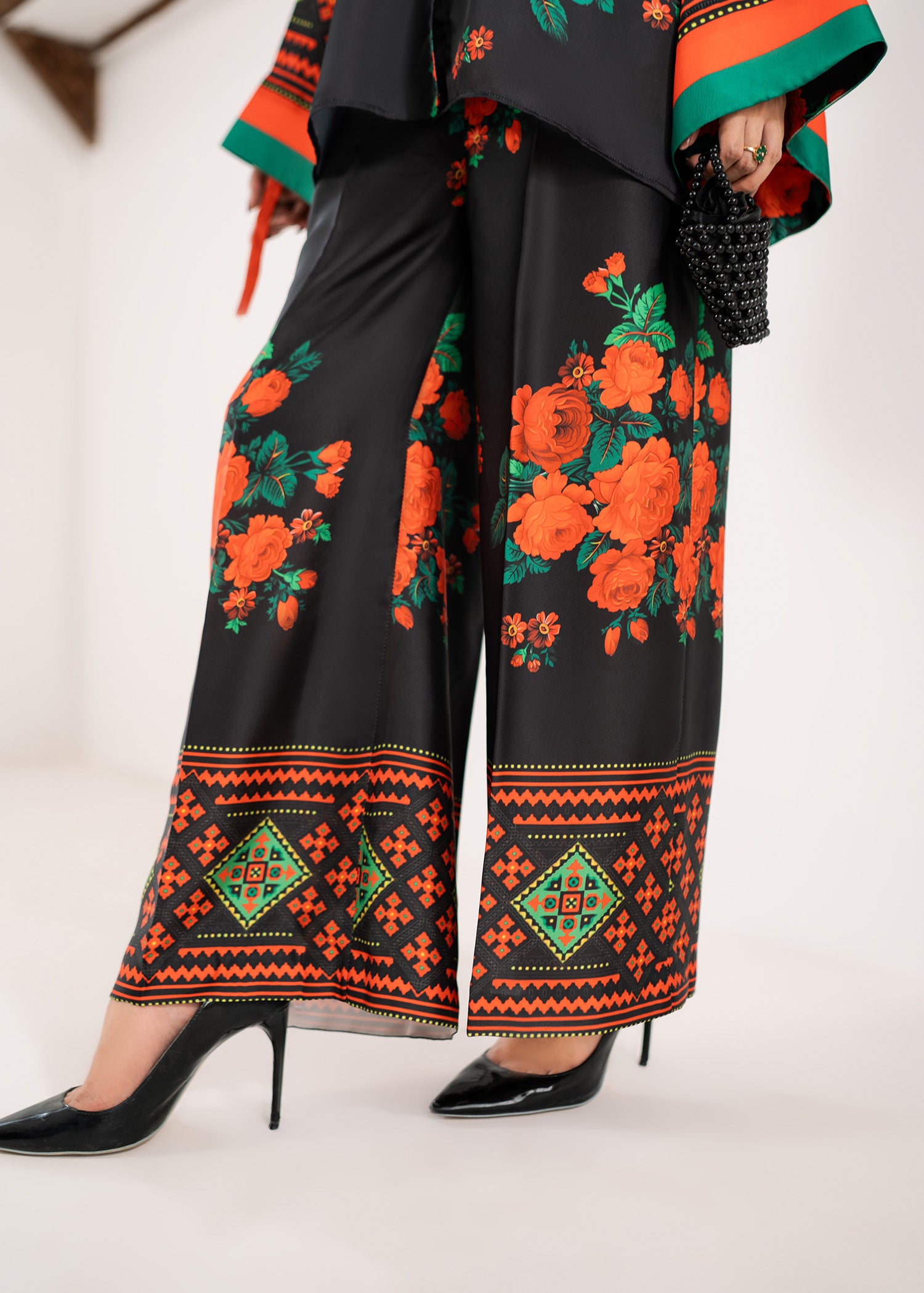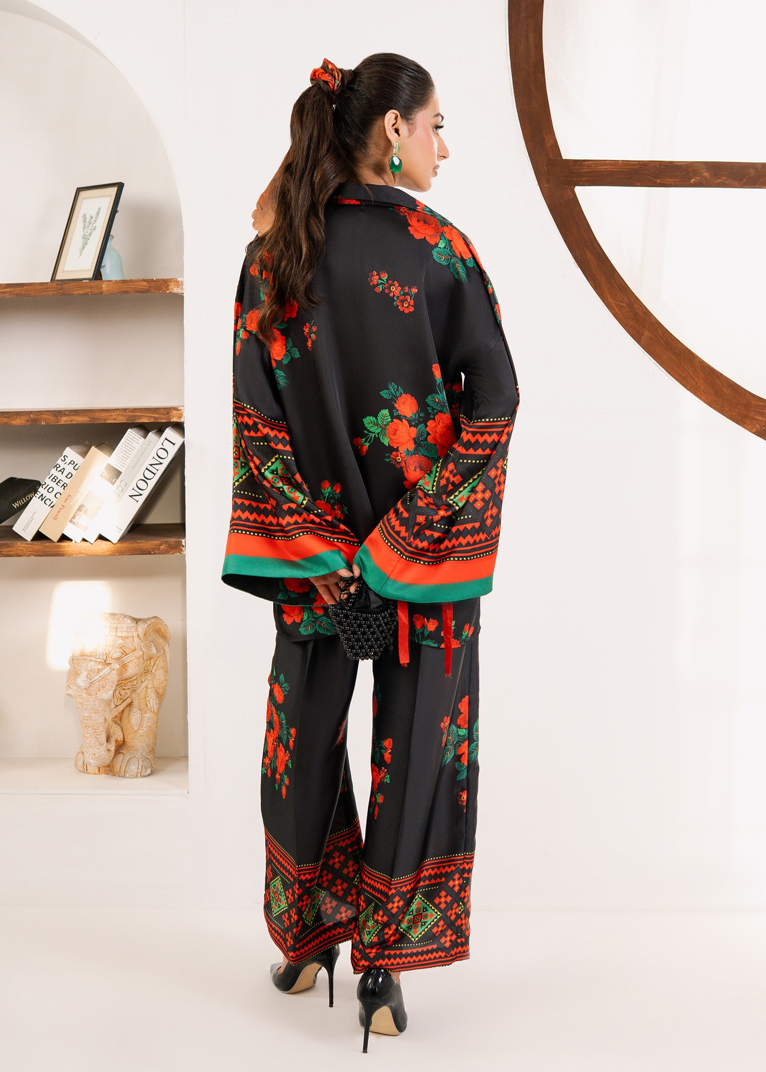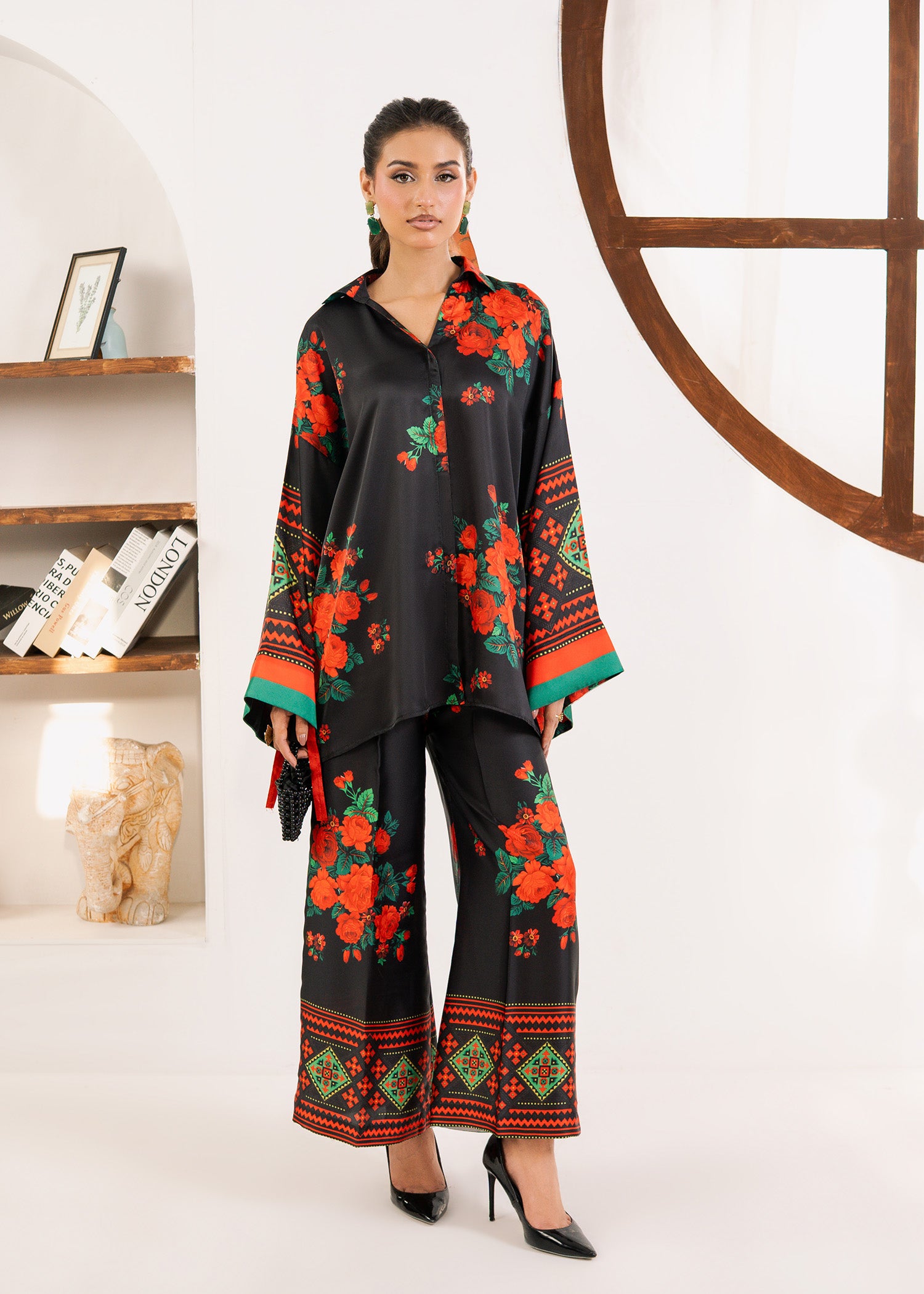 Exude timeless elegance with our Noir Charm Co-Ord Set, a sophisticated two-piece outfit crafted from luxurious silk fabric. The rich black hue enhances its classy appeal, while the smooth texture adds a touch of effortless glamour. Perfect for evening events or festive occasions, this co-ord set combines comfort with refined style. Pair it with statement jewelry and heels for a stunning, polished look.