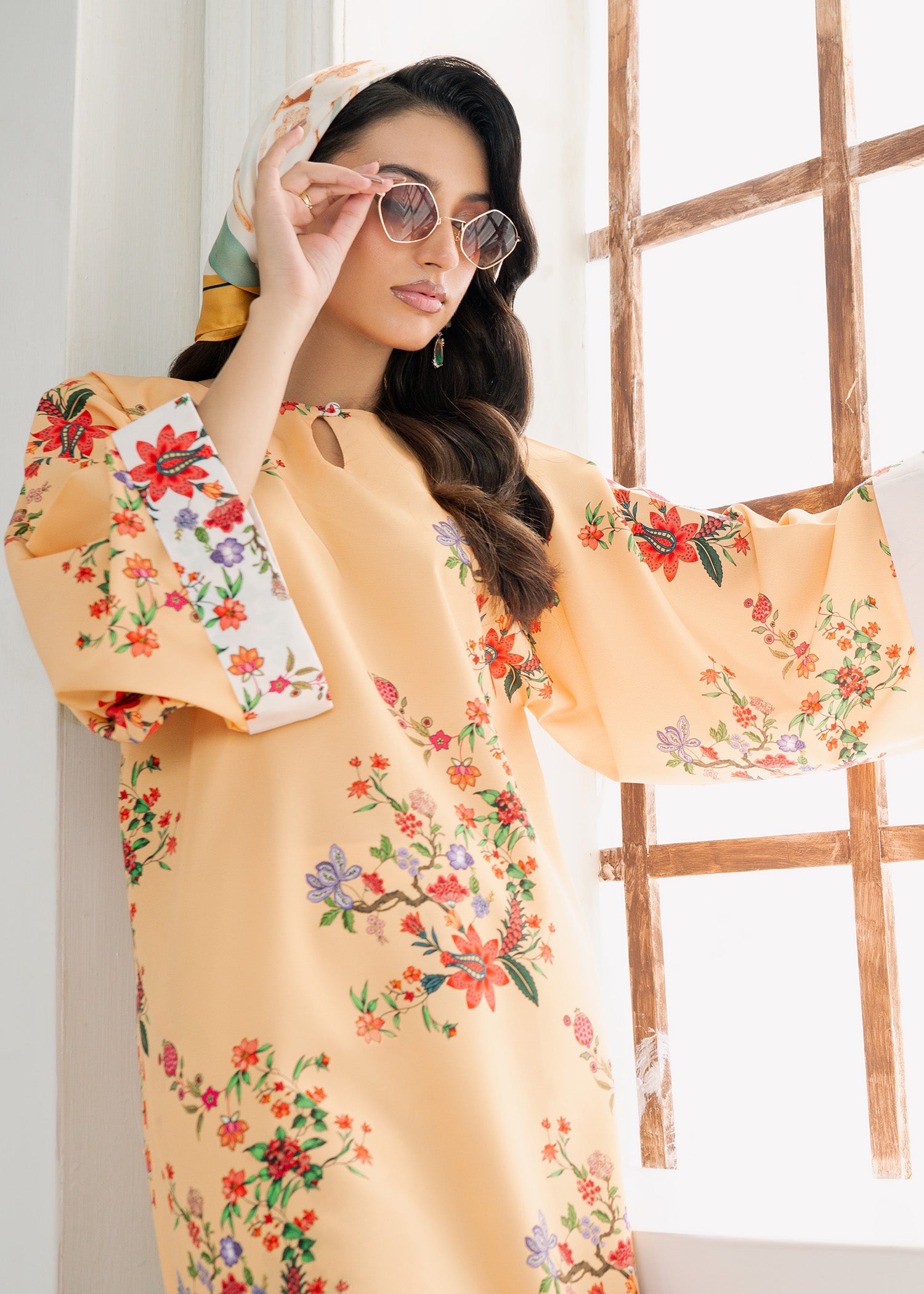 Radiate sunshine in our Yellow Bloom Dress, a beautifully stitched two-piece outfit made from soft crepe fabric. Adorned with charming yellow and white prints, this dress exudes freshness and feminine grace. Its lightweight, flowy design ensures all-day comfort while keeping your look effortlessly elegant. Perfect for daytime gatherings, brunches, or casual outings, this dress adds a cheerful glow to your wardrobe.